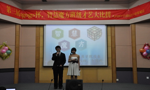 2012年3月14日晚六点半,由东吴商学院团委青年政校、分团校举办的agogo杯第三届“智慧魔方”――班级才艺大比拼大赛在财科馆二楼如期举行。本次活动的嘉宾有团委老师陶勇、赞助商代表以及东吴商学院六大学生部门各代表。