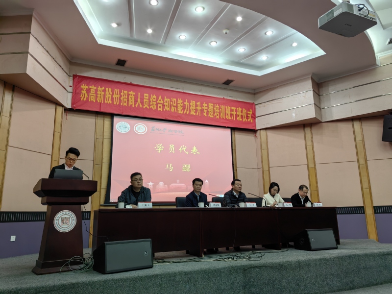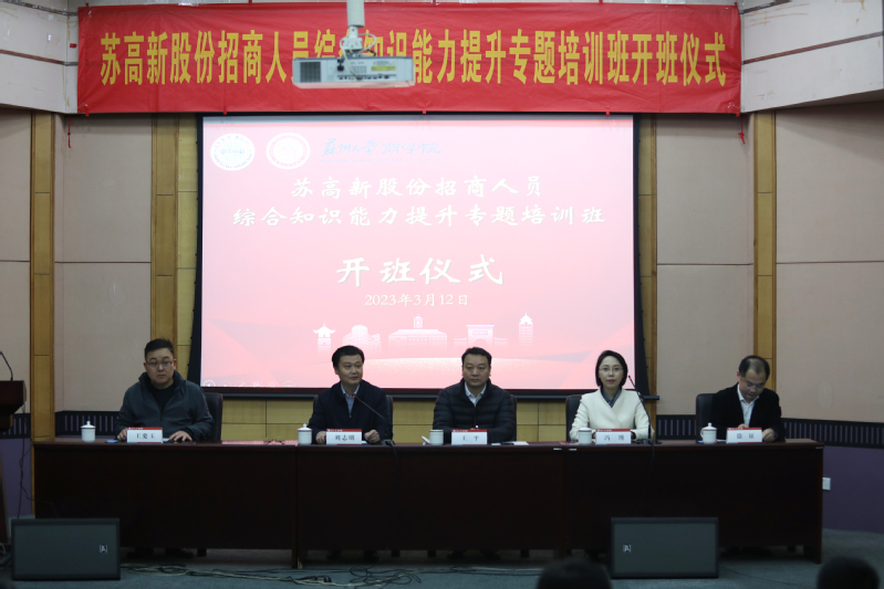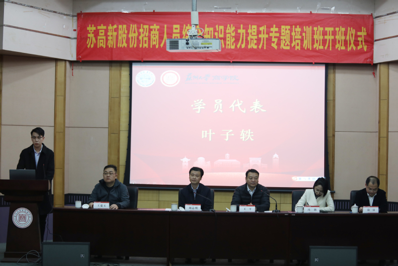3月12日上午,由苏州大学商学院承办的苏高新股份招商人员综合知识能力提升专题培训班开班仪式在苏州大学商学院学术报告厅举行。此次培训班邀请了招商引资领域的多位专家围绕招商理论和招商实务等主题进行专题授课和讨论交流,旨在全面提升苏高新股份招商人员的能力素质,加强理论武装、聚力创新突破。