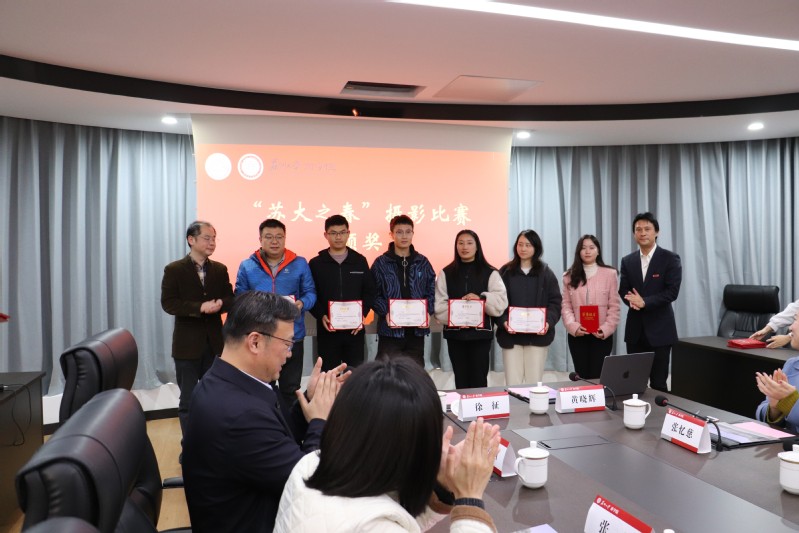 缪院长宣读“苏大之春”摄影比赛优胜奖学员及培训班优秀学员名单。徐总和黄书记向学员颁发荣誉证书并合影留念。