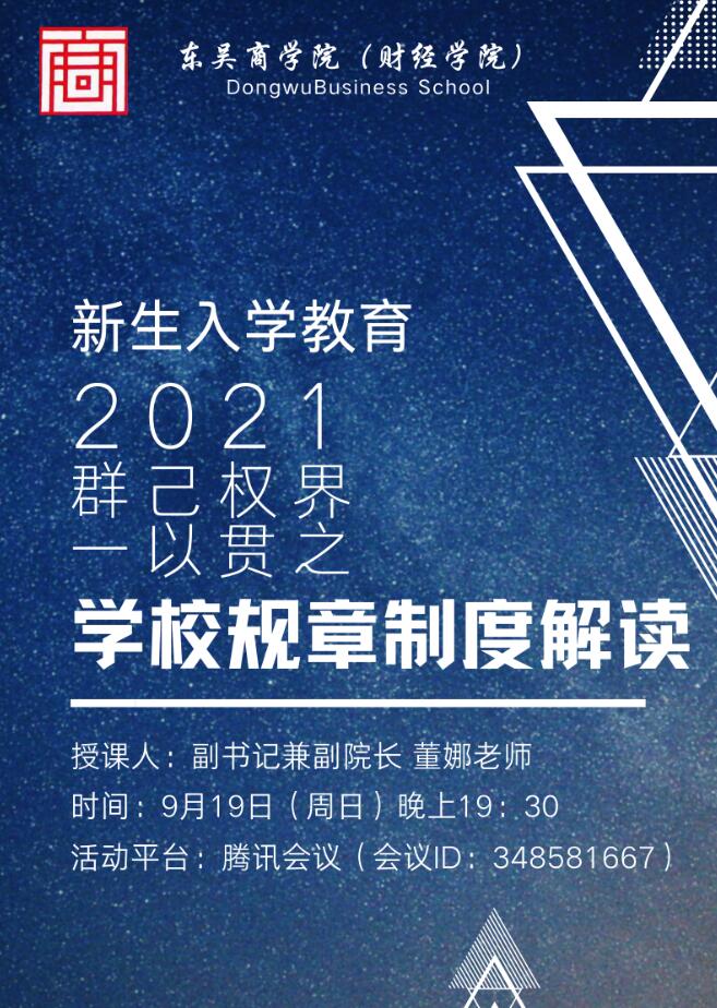 东吴商学院2021级新生入学教育系列之规章制度解读