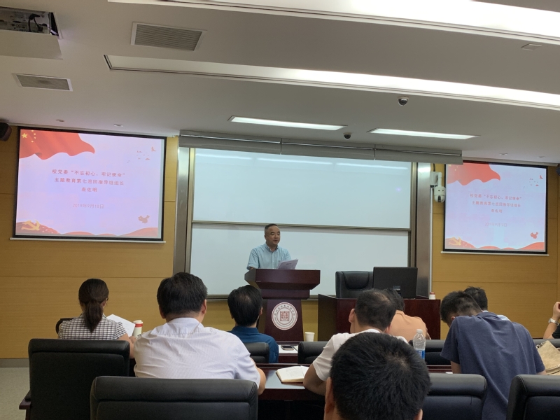 首先由学院党委书记、学院主题教育领导小组组长刘志明同志做主题教育动员部署讲话。刘书记指出,学院党委将严格按照中央、省委和学校党委的统一部署,在校党委第七巡回指导组指导帮助下,努力把主题教育开展好,并提出三点意见:一、注重“讲政治”,切实增强对开展主题教育的思想认同:1、开展主题教育,是学深悟透习近平新时代中国特色社会主义思想的重要举措。2、开展主题教育,在新时代具有重大现实意义。3、开展主题教育,要深刻领会“守初心、担使命,找差距、抓落实”这十二字的总要求。4、开展主题教育,要深刻领会目标任务。二、注重“抓落实”,圆满完成主题教育的各项任务举措:结合学院实际,认真制定工作方案、做到“四个结合”(一是要结合巡察整改要求的贯彻情况,二是要结合全面从严治党主体责任书执行情况,三是要结合两个主体责任清单落实情况,四是要结合十三五规划完成情况)开展主题教育。1、要融会贯通,抓好理论学习。2、要聚焦问题,抓实调查研究。3、要对标找差,抓准检视问题。4、要动真碰硬,抓牢整改落实。三、注重“严要求”,确保主题教育高质量推进并取得实效。1、及时成立主题教育领导小组和办公室,认真接受校党委巡回指导组的指导。2、抓好领导班子和党支部,利用网站、新媒体等途径广泛宣传,营造良好的氛围。3、主题教育要结合庆祝新中国成立70周年等大型活动,结合学院中心工作,力戒严防形式主义,务求主题教育取得实际效果。