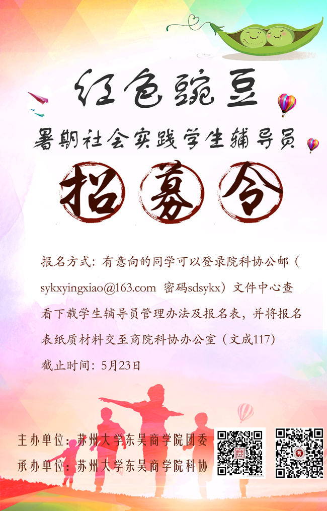 【东吴商学院】暑期社会实践学生辅导员招募
