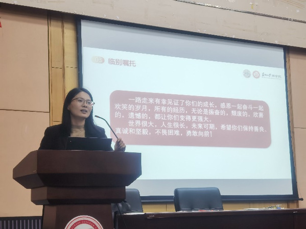 亲爱的同学们,一路走来有幸见证了你们的悲欢离合、爱恨情仇、跌宕起伏,安慰过很多曾经失恋失落失意的人,也目睹过很多同学站在舞台的高光时刻。所有的经历,无论是好的,坏的,振奋的,颓废的,得到的,遗憾的,一定能让你们变得更强大。感谢你们陪我走过这些年,一起成长一起欢笑。世界很大,人生很长,未来可期,希望你们保持善良、真诚、坚毅,不畏困难、勇敢向前,商学院永远是你们的家,欢迎常回家看看!