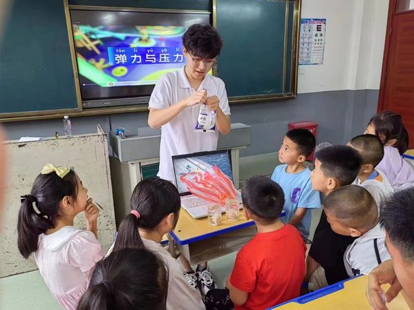 物理科普课上,蔡加乐同学寓教于乐,用生动有趣的动画和直观切实的科学实验,让同学们亲身体验物理的魅力。从弹力、浮力、压力再到重力,同学们在动手操作中学习到了物理知识,激发了同学们观察生活的兴趣和科学探索的好奇心。