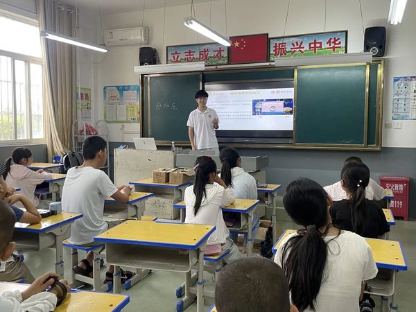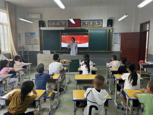首先,支教团的成员进行了简短的自我介绍,并分享了对接下来的支教生活的期待与憧憬。接着,褚思远同学介绍了苏州大学的悠久历史,深切讲述了“惠寒”支教团传递出的“惠泽寒门、情系学子、助人立己”的惠寒精神以及与蓝田小学深厚的合作渊源。多年来,两校间的紧密合作不仅为孩子们带来了丰富的教育资源,更搭建了一座知识与梦想的桥梁,见证了无数的成长。