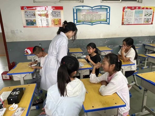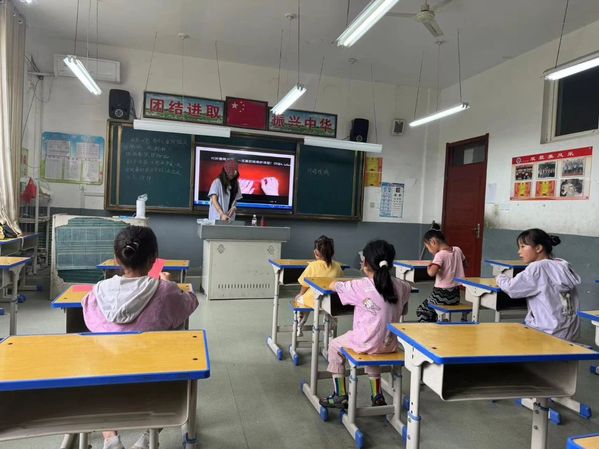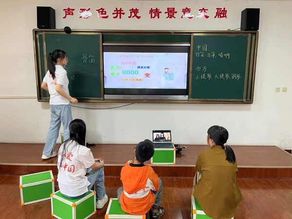 音乐课上,支教团成员带领孩子们走进江南丝竹的世界,学习基础的乐理知识和乐器种类。夏平平同学带领同学们领略江南丝竹的细腻雅致,悠扬空灵的竹笛声如同山泉流淌,周可婕同学教授同学们演唱《声声慢》,孩子们在旋律中找到了情感的共鸣,音乐成为了她们表达自我和沟通情感的桥梁。