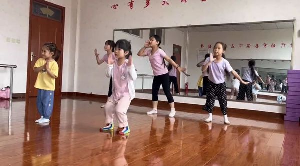舞蹈课上,伴随着《咖喱咖喱》这首歌欢快的节奏,简雯兮同学与同学们在舞蹈房中尽情跳动,欢声笑语。小小的种子在慢慢的发芽,用优雅的舞蹈去修剪枝桠。每一个舞步都是孩子们的自由舞台,同学们小小的手掌拍着短短的节拍,脚下的每一次跃动都成为孩子生命中闪光的美好。