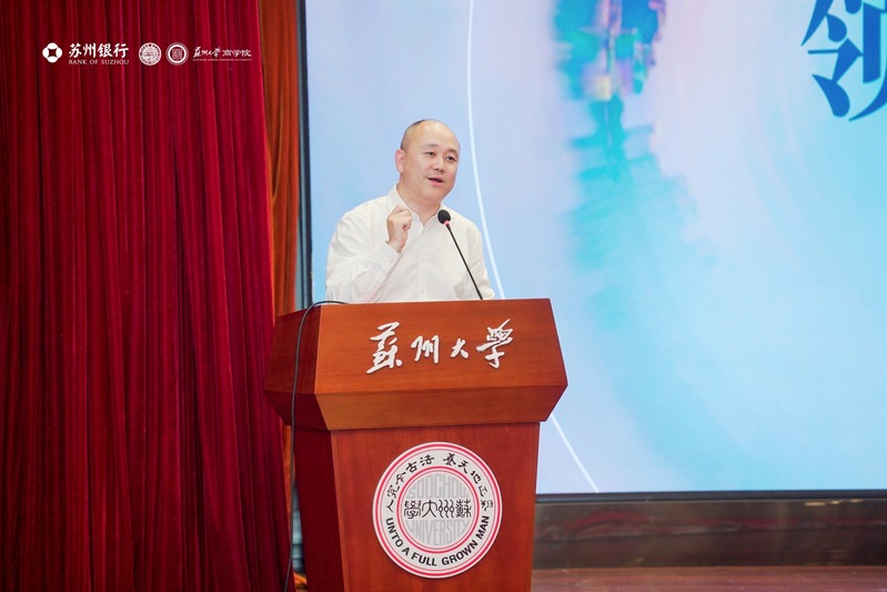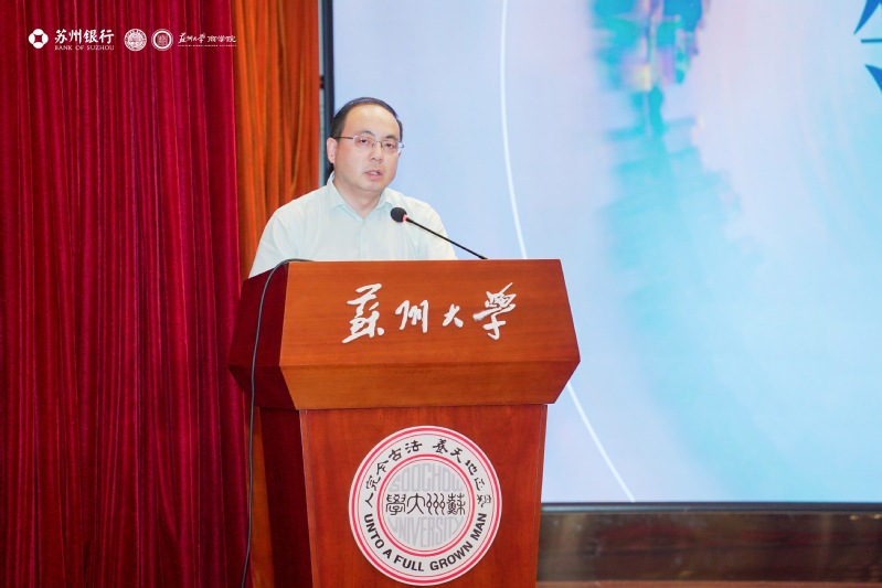 苏州银行财富管理部总经理陈宁也发表了讲话,他首先对实践营的成功举办表示肯定,并对同学们的积极参与和出色表现给予高度评价。陈总介绍了苏州银行在财富管理领域的最新动态,并展望了金融行业未来的发展趋势,鼓励同学们要紧跟时代步伐,不断提升自己的专业素养和综合能力。同时,他也表达了与苏州大学商学院深化合作的意愿,共同为培养更多优秀的金融人才贡献力量。
