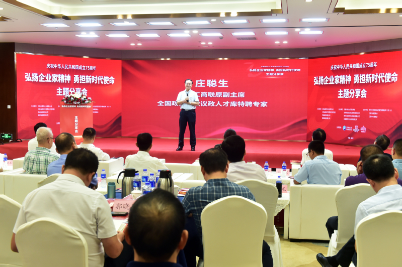 活动的最后,全国工商联原副主席、全国政协参政议政人才库专家庄聪生先生应邀作了题为《坚定信心谋发展砥砺前行向未来》的演讲。庄聪生解读了习近平总书记关于企业家精神内涵的深刻论述,强调企业家精神是最稀缺的资源,并剖析了当前企业家面临的国内外形势,勉励企业家不懈奋斗、勇攀高峰。