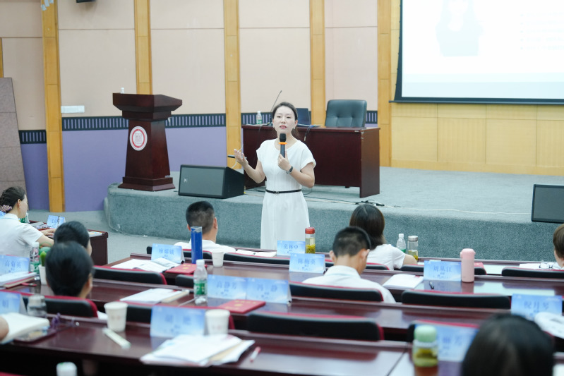 接着,经管培训学院企业定制中心副主任于音发表开班致辞。她对各位学员的到来表示热烈的欢迎。接着,她介绍了经管培训学院的办班优势和各项板块的业务,表示此次培训学院邀请了校内外优秀师资,为学员们量身定制学习计划,充实知识储备,强化思维能力。希望各位学员能够通过这两天的培训学有所获,不虚此行。