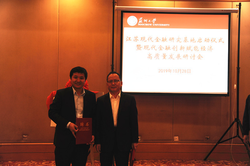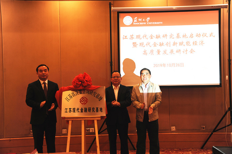 2019年10月28日,江苏现代金融研究基地启动仪式暨现代金融创新赋能经济高质量发展研讨会在南京举行。本次会议由苏州大学东吴商学院主办。