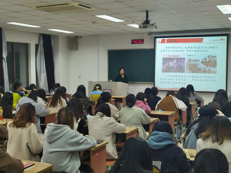 接下来,黄河老师通过梳理百年党史,展现了党在百年历程中的艰苦奋斗的豪情和取得的伟大成就。通过电影《飞夺泸定桥》、《长津湖》以及歌曲《春天的故事》,我们党领导的革命、建设、改革伟大实践,是一个接续奋斗的历史过程,在一个14亿多人口的国家实现社会主义现代化,是一项异常艰巨繁重的任务,惟有苦干实干、攻坚克难,不断创造无愧于历史和人民的新业绩。接着,黄河老师通过盘山路修建带来便利的切身体会,以及短视频上的机器人运用、中国高铁、移动支付等反映了中国如今科技与产品的领先,发出了“厉害了我的国”的感慨。