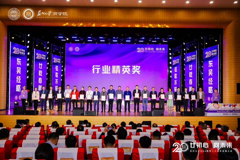 2024年11月10日,苏州大学MBA教育二十周年发展大会在天赐庄校区存菊堂隆重举行,大会以“廿初心,向未来”为主题,深入贯彻习近平新时代中国特色社会主义思想,全面落实党的二十届三中全会精神。各界领导、教育精英、校友及师生代表齐聚一堂,共同回顾苏大MBA二十年来的奋斗历程与发展成果,谋划未来发展蓝图。