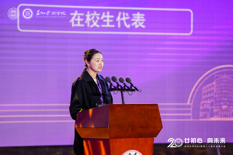 在校生代表、苏州大学MBA联合会主席齐文溪表示,作为新时代青年,要胸怀两个大局,心系国家事、肩扛时代责,努力成为堪当民族复兴重任的时代新人。