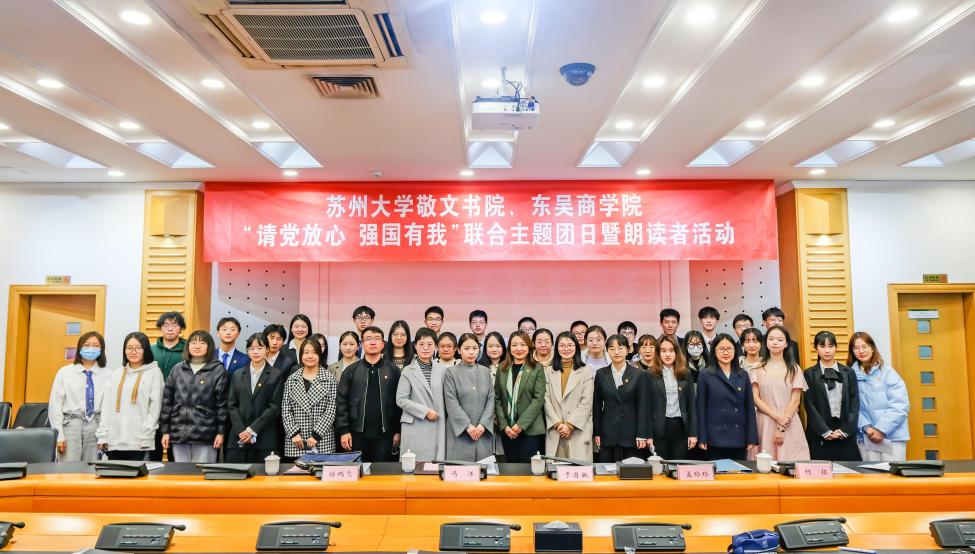 为庆祝中国共产党成立100周年,坚定共青团员理想信念,促进大学生明晰新时代党和国家赋予的责任与使命。东吴商学院团委与敬文书院团委“请党放心,强国有我”联合主题团日暨朗读者活动于12月10日在红楼217室举行。