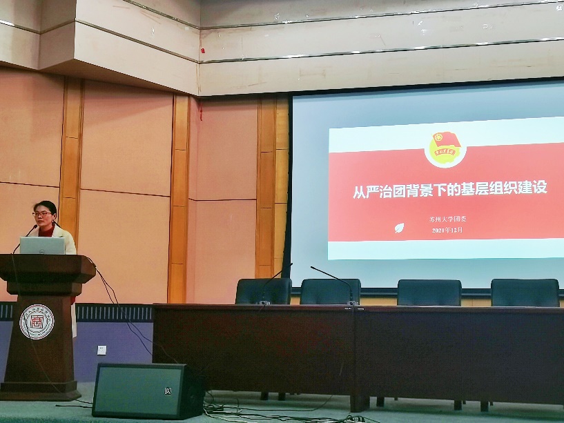 首先苏州大学团委副书记徐娜老师带来题为《从严治团背景下团的基层组织建设》的专题讲座。她指出,作为新时代的团学骨干,首先要明势,正确认识新时代共青团工作,提高政治站位,找准工作定位。其次要顺势,转变工作方式,有作为、善作为,积极做好新时代共青团工作。最后要适势,练就过硬本领,积极探索创新,推进共青团工作高质量发展。她强调,基层组织是共青团全部工作和战斗力的基础。基层强才是真的强,基础好才是真的好。广大团学骨干要提高认识,增强业务能力,积极把这项基础性、根本性、长期性的工作做深、做细、做实、做好。
