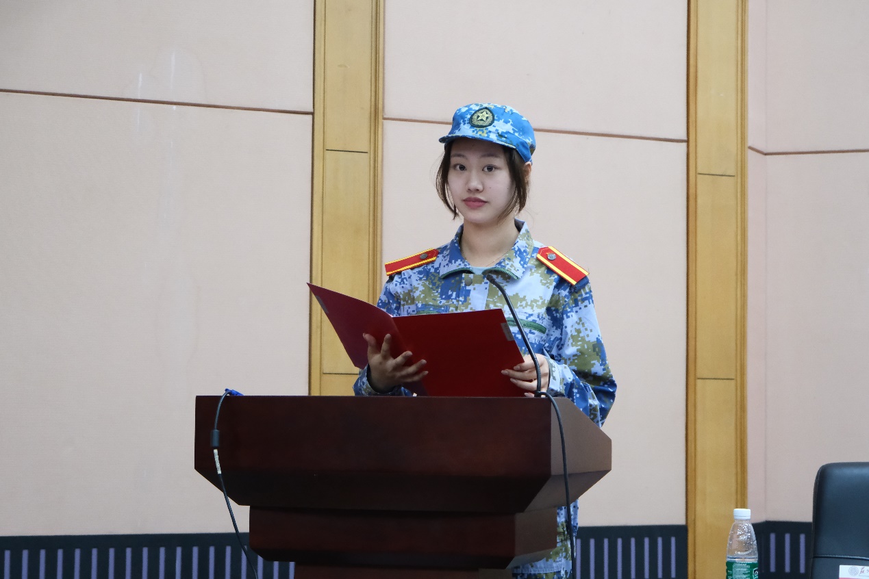参训学员代表商学院2022级金融班(中外合作办学)程乐怡同学发言,“作为苏大学子,承担时代重任是我们必然的使命,‘养天地正气,法古今完人’的校训不断鞭策着我们前进”。通过介绍军训的悠久历史,程乐怡带我们领略了军训的独特魅力。她代表全体参训学员作出郑重承诺:“服从命令,听从指挥;锤炼意志,锻打基础;塑形铸魂,保家卫国”。