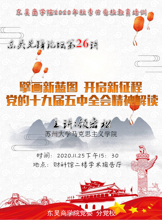 东吴商学院2020年秋季分党校教育培训之党的十九届五中全会精神解读