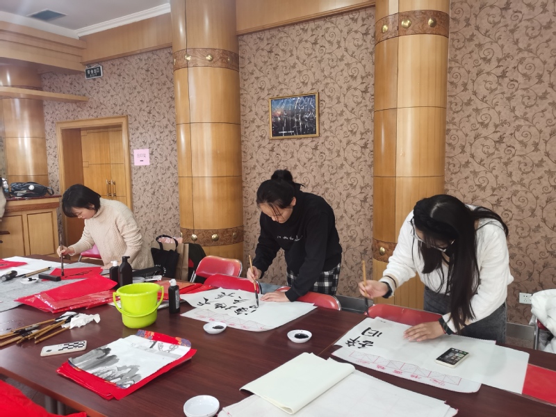 联欢活动正式开始,商院学子尽显风采。戴逸然同学的《生来是鹰》,歌声悠扬;胡悦、冯明敏、沈欣欣同学的朗诵《礼赞教师》,声情并茂,为退休老教师献上最衷心的祝愿;孙培婷、陈若涵、叶琳琳、魏星雨同学的合唱《我和我的祖国》用歌声表达对祖国母亲的热爱。活动现场,还特别邀请了学校国资处芮雪老师和学院飞扬水墨社的胡诗语、曹爱琳同学为老教师们写春联、送祝福。