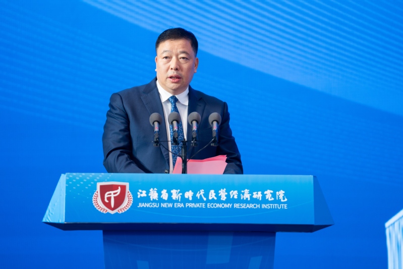 江苏省新时代民营经济研究院理事长,恒力集团董事长、总裁陈建华在致辞中表示,恒力集团作为苏州第一批民营企业,其发展离不开“敢为人先、实干兴邦”的苏商精神。正是一代又一代苏商敢为人先,实干兴邦,才能打响“江苏制造”金口碑。他呼吁广大民营企业家,要依靠新技术、开辟新赛道、激活新动能,围绕生态绿色发展、科技创新引领、数字化智能化转型三个方面重点发力,共同推动江苏经济实现高质量发展。