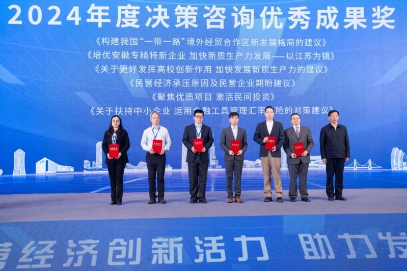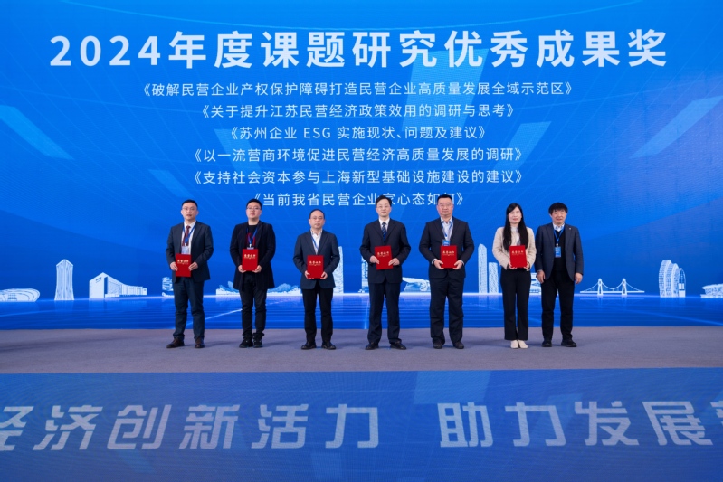 会上举行了江苏省新时代民营经济研究院2024年度决策咨询、课题研究优秀成果奖颁奖仪式。《构建我国“一带一路” 境外经贸合作区 新发展格局的建议》等6篇报告获2024年度决策咨询优秀成果奖,《关于提升江苏民营经济政策效用的调研与思考》等6篇报告获2024年度课题优秀成果奖。省委统战部副部长、省工商联党组书记刘军,中国工程院院士、苏州大学校长应汉杰分别为江苏省新时代民营经济研究院2024年度决策咨询、课题研究优秀成果奖颁奖。