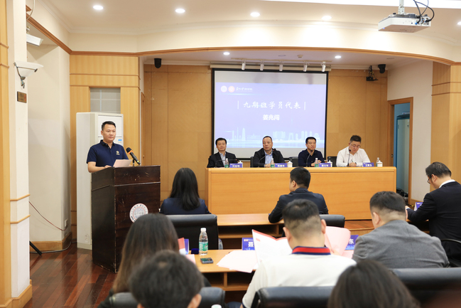 第九期高级工商管理研修班学员代表、苏州龙昌电子公司董事长姜兆闯在发言中表示非常荣幸在丰收满地黄的金秋十月开启百战归来再读书的新征程。虽然大家有着不一样的背景,来自不同的行业,现在都有了同一个身份——第九期高级工商管理研修班学员,今后在学习过程中,努力实现从企业家到学员的身份转变,严格遵守研修班的学习纪律,坚持学用结合,勤于思考,敢于创新,在百年未有之大变局中始终保持越是艰险越向前的刚健勇毅的斗争精神,不惧风雨,勇挑重担,持续推动企业转型升级、稳健发展。