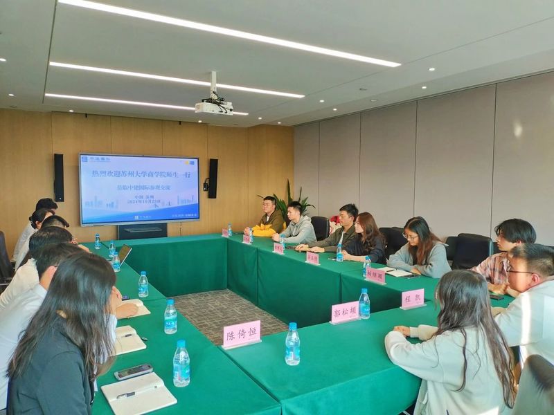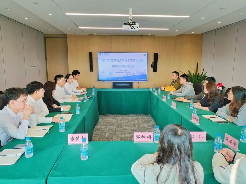 2024年10月23日下午,苏州大学商学院师生代表团来到中建国际苏州总部,开展了一次令人难忘的访企拓岗活动。中建国际城市建设有限公司人力资源部副总经理鲍文涛、苏州大学商学院辅导员占玉倩、顾博文以及商学院学生代表出席了本次活动。