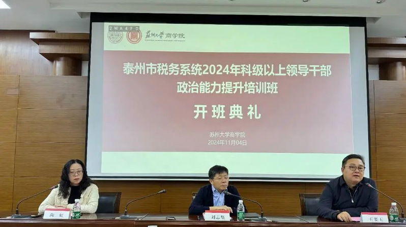 为进一步提升泰州市税务系统科级以上领导干部的政治素养和领导能力,推动税务工作高质量发展,2024年11月,“泰州市税务系统科级以上领导干部政治能力提升培训班”在苏州大学顺利举办。本次培训分为两期,分别于11月3日-11月7日、11月17日-11月21日进行,共有90余名税务干部参与此次培训。