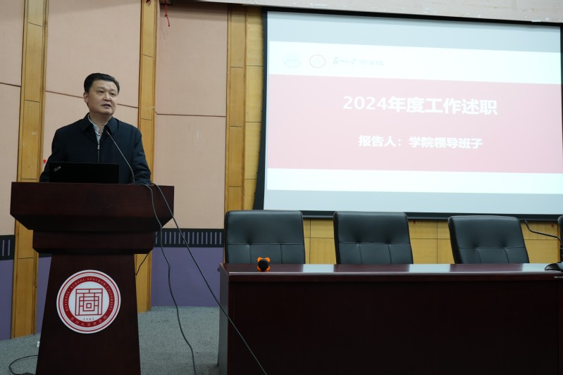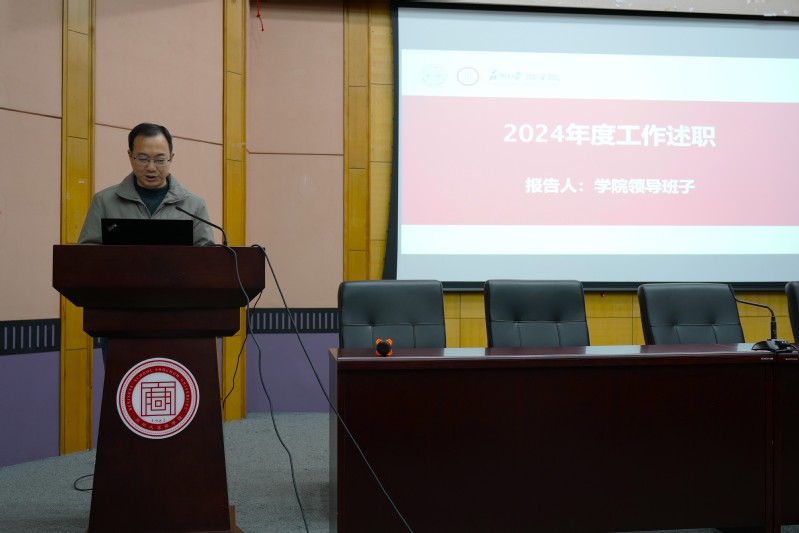 商学院领导班子成员分别从“德、能、勤、绩、廉”五方面依次作个人2024年度述职汇报。随后学院进行了领导班子、处级领导民主测评。