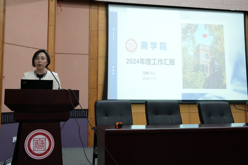 商学院副院长兼MBA中心主任王要玉作学院2024年度财务工作报告。