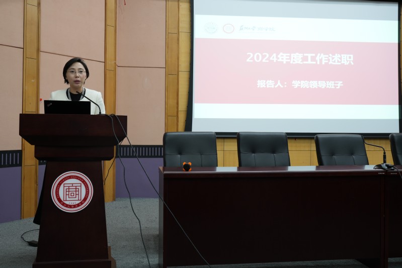 学院工会主席汪晓媛简要总结本年度工会工作,2024年学院工会获得了“2023-2024年度苏州大学工会工作先进集体”,并宣读了工会积极分子名单。她表示院工会取得的一系列成绩离不开学院领导和各位老师的大力支持,并鼓励学院教职工能够更多地参与工会活动,丰富业余生活。