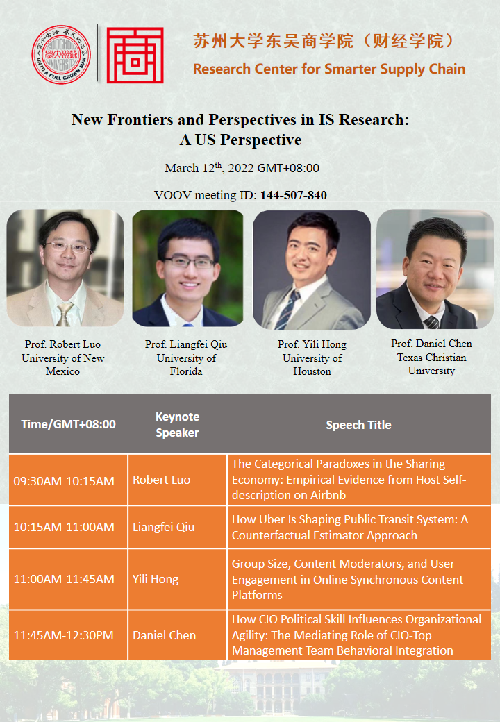 美国休斯敦大学教授, Production and Operations Management期刊高级主编, Information Systems Research期刊副主编