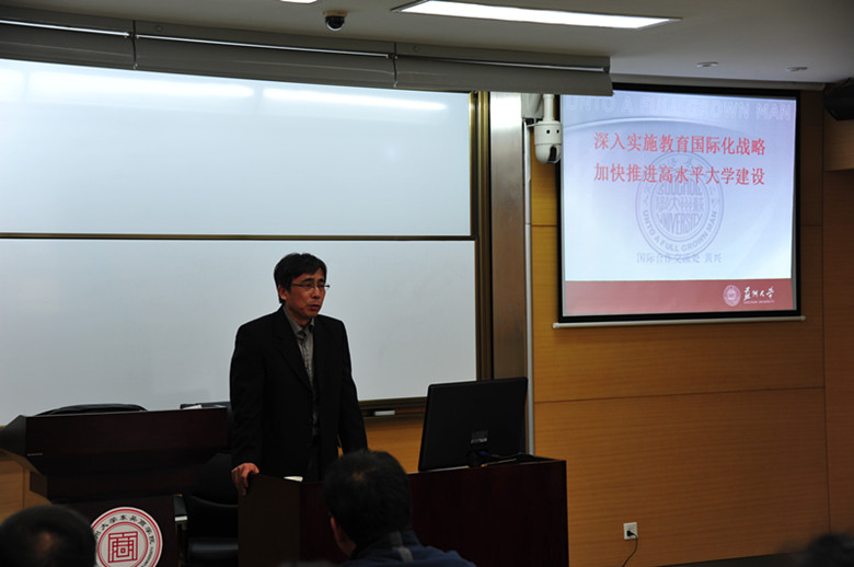 校国际交流合作处黄兴处长为培训班作题为《深入实施教育国际化战略 加快推进高水平大学建设》首场专题报告,黄处长系统全面的介绍了学校教育国际化的思路与目标,在加快人才队伍国际化建设、推进学生国际化培养、发展外国留学生教育、举办中外合作办学项目、鼓励学术、科研国际合作、开展境外办学以及加强国际化校园管理等方面采取的举措及取得的成绩,同时客观分析了学校在推进国际化办学方面存在的问题和不足,并就今后的工作提出了相应的建议。