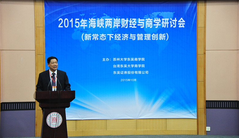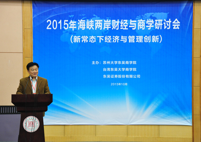 最后,袁银男副校长发表讲话,他对远道而来的各位专家学者表示热烈的欢迎和衷心的感谢,并向参会代表、师生简要介绍了苏州大学的历史与发展现状。袁校长强调,在经济发展的新常态下,两岸学者应进一步加强交流合作,提高影响力,为两岸经济和学术的发展繁荣做出贡献。