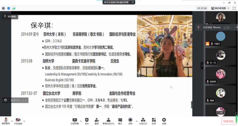 最后分享的是保辛琪学姐,她向大家热情地介绍了很多自己总结出来的学习方法,并且讲述了自己在学习的道路上是如何持续地保持积极性的,希望这些宝贵的经验和方法能够帮助同学们提高学习效率,向着更高的目标迈进。