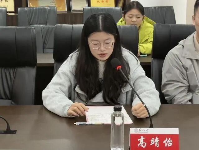 高靖怡分享了一年以来在学校的成长经历与学习经验。她表示,苏州大学是一所充满人文关怀的学府,在这里能真切感受到学校对每位学生的关心与支持,鼓励同学们充分利用学校图书馆等平台资源,提升专业学习和科研创新能力。同时,鼓励同学们要积极参与社会实践,形成良好的人际关系,更好地体验丰富多彩的大学生活。