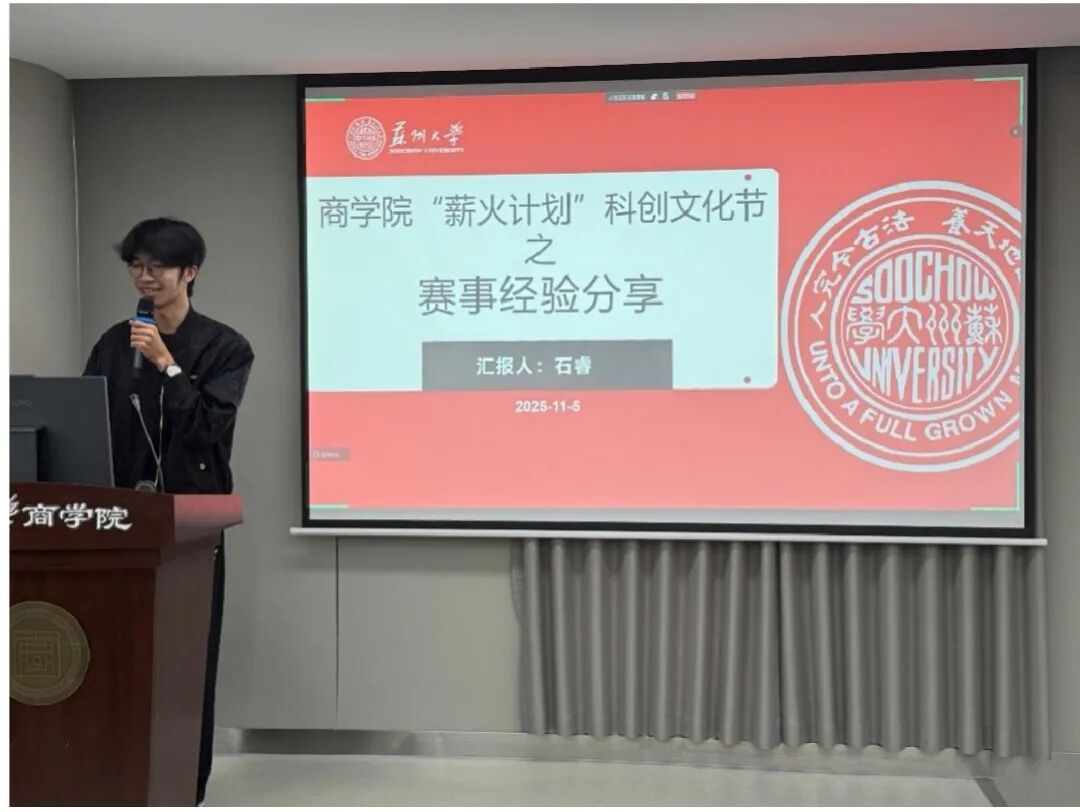 在面对众多科研创业竞赛的挑战时,初涉个人科创之路的同学们难免会感到迷茫。作为“薪火计划”科创文化节的序幕,本次活动的隆重举行,通过专题赛事的深入阐释和经验分享,提高了同学们对竞赛的理解,激发他们投身竞赛的激情。激励同学们将理论知识与实践紧密结合,以期在更广阔的舞台上展现苏州大学商学院学子的卓越风采。