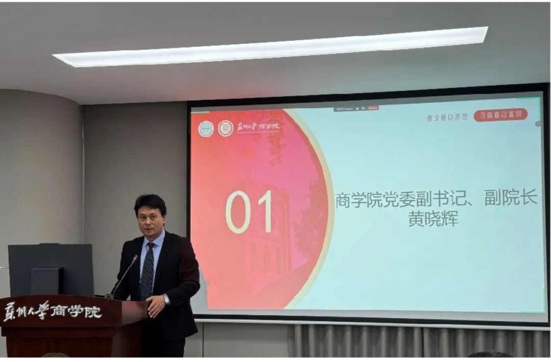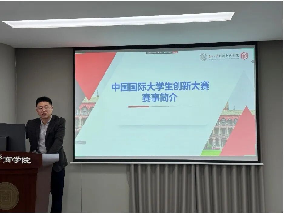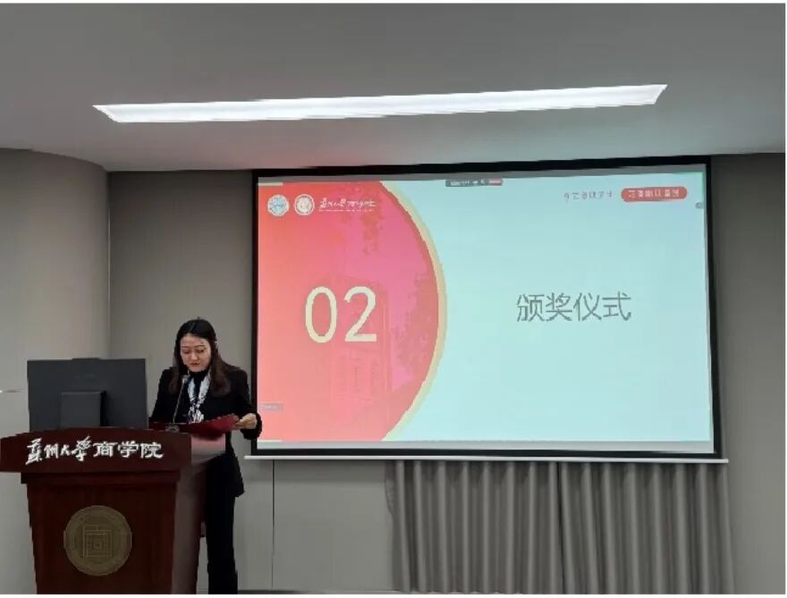 商学院团委书记孙正嘉宣读苏州大学2024年创新创业创意大赛和苏州大学2025年“挑战杯”大学生课外学术科技作品竞赛的商学院获奖名单。