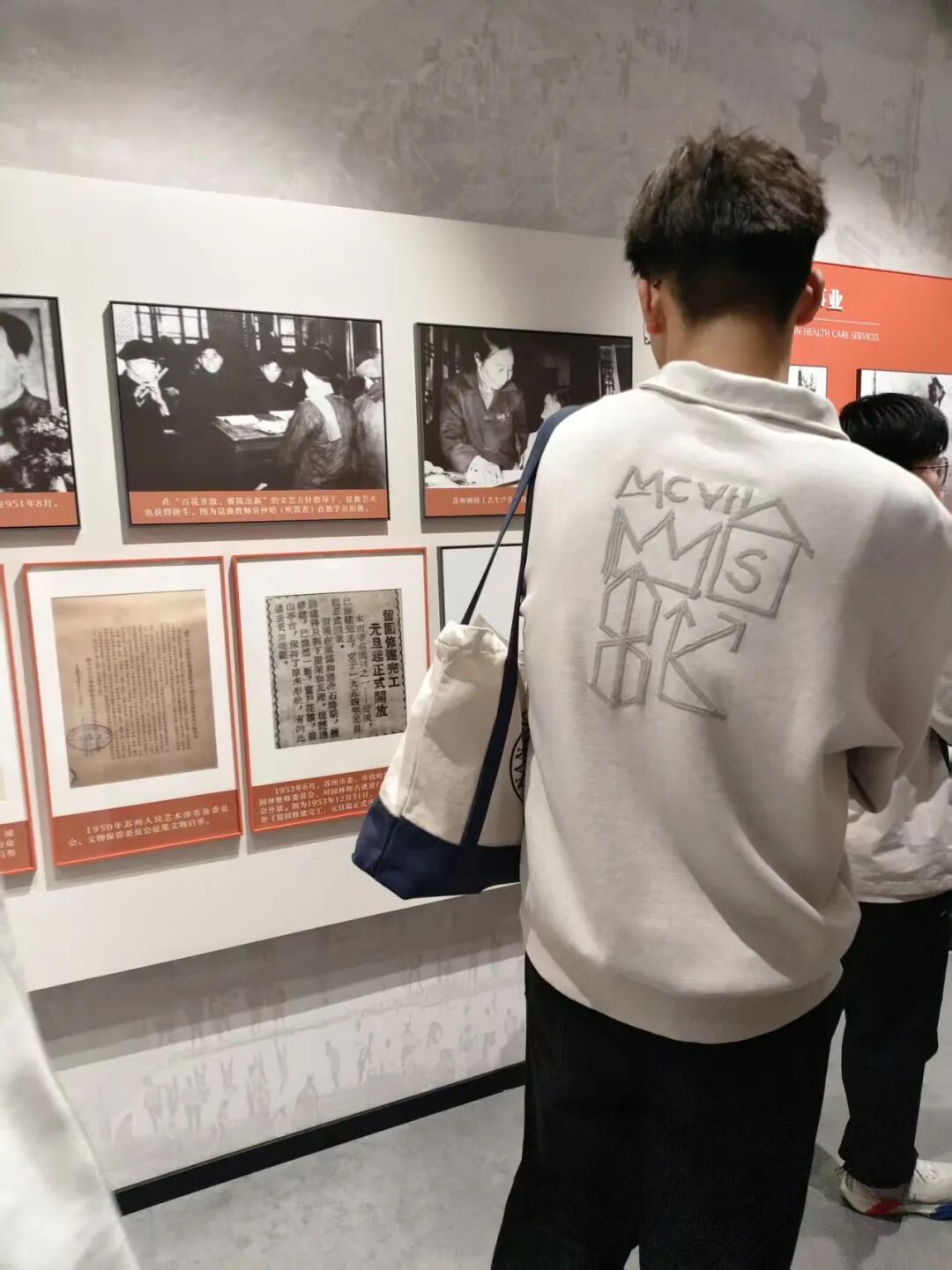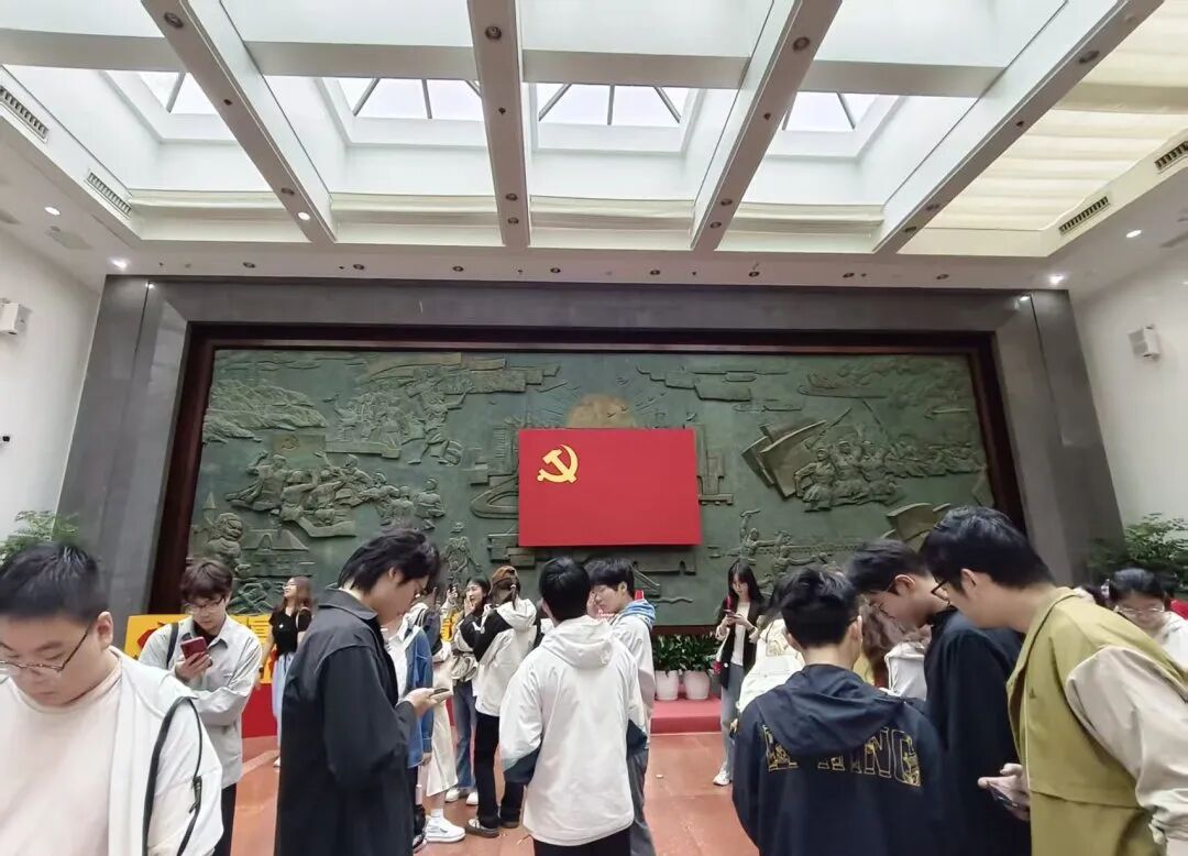 参观途中,同学们驻足凝视,时而轻声交流感悟,时而认真记录细节。那方寸展柜与蜿蜒的路径交织,从中走过,仿佛于历史的长河边涉足而行,一个个故事,一寸寸历史,都犹如红色的涓流,温柔而坚定地唤醒着于我们脉搏中所跳动的红色基因。
