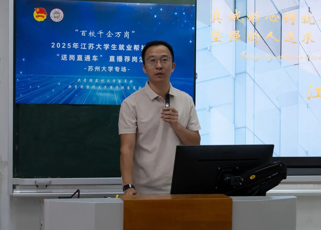 为深入贯彻党中央和习近平总书记关于促进高质量充分就业的重要指示精神,切实做好高校毕业生就业服务工作,促进毕业生高质量充分就业。2025年10月15日,苏州大学商学院2026届毕业生秋季专场双选会在天赐庄校区东校区成功举办,活动由商学院分团校宋天逸同学主持。