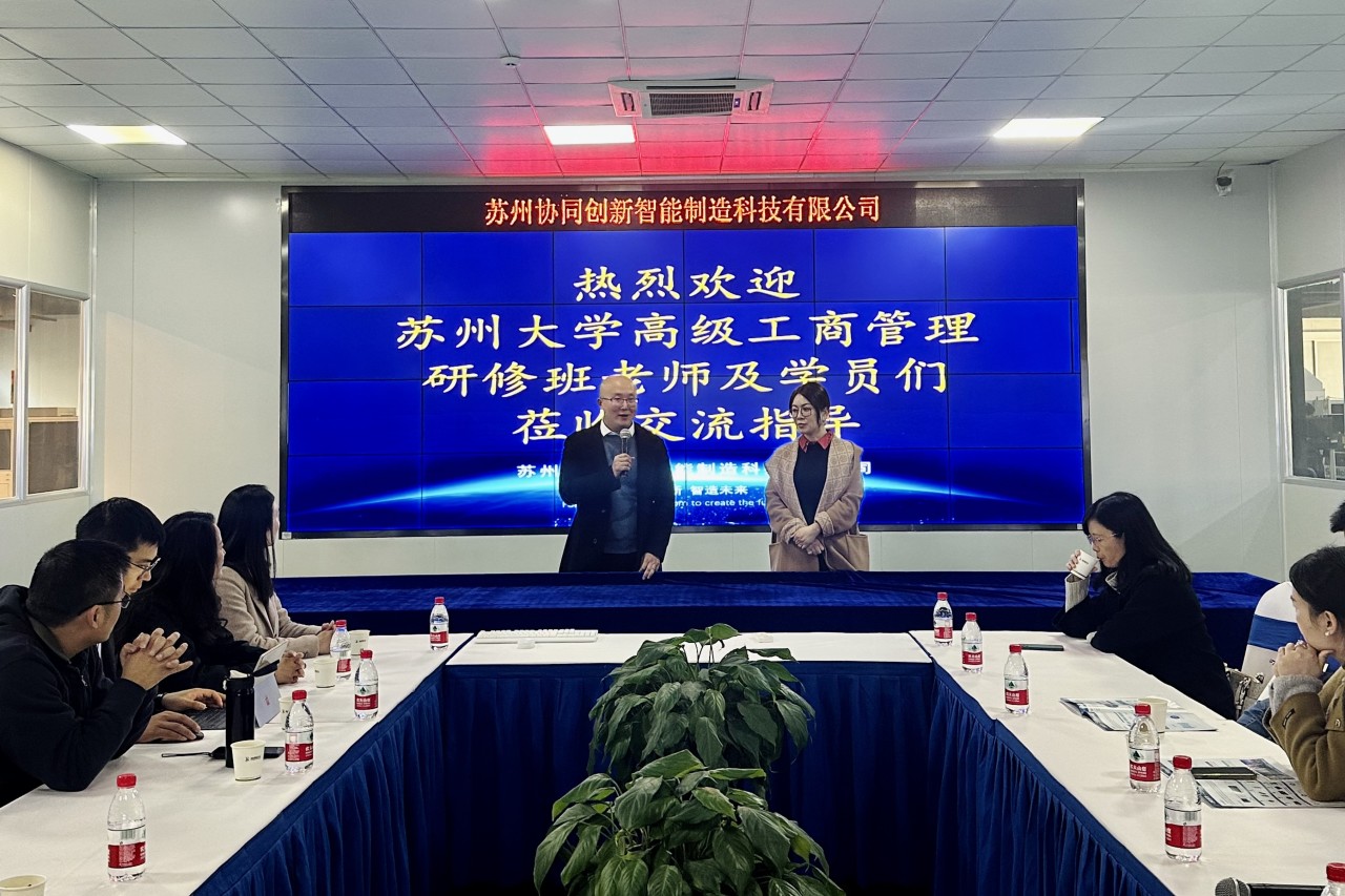 本次移动课堂,学员们走进国家级专精特新“小巨人”企业——苏州协同创新智能制造装备有限公司参访交流,董事长许伟娟、执行董事黄羿衡博士、中心主任刘晓东教授予以热情接待,大家通过展厅讲解、案例解析、沙龙对话,对工业互联网标识解析公共服务平台赋能企业数字化转型有了更深入的认识。协同科技作为全国领先的数字化平台服务商及较早建立工业互联网标识解析二级节点建设单位,以平台+标识的创新发展理念,以应用落地为核心,抢占数字经济的关键赛道,加快企业智改数转网联进程、推进多行业多平台技术的融合创新。促进数字经济和实体经济深度融合,打造经济发展新引擎。