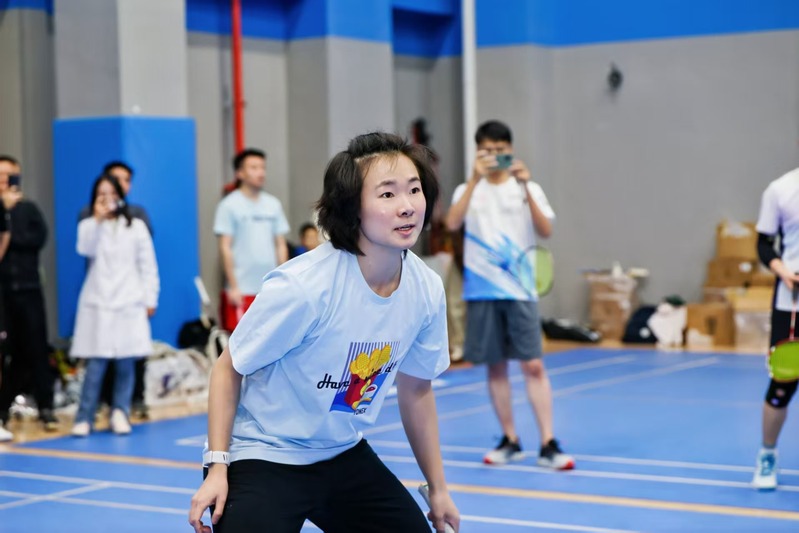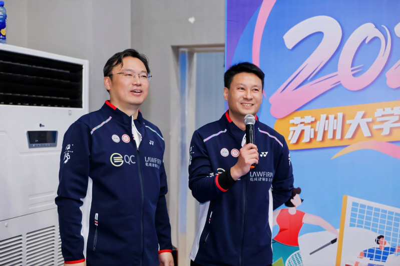 活动中,羽毛球世界冠军、苏大校友何冰娇惊喜亮相,为赛事送上诚挚祝福。她鼓励师生与校友“以运动强健体魄,以拼搏点亮征程”,将现场氛围推向高潮。苏州大学教职工羽毛球协会会长、教职工羽毛球冠军龚肖奕老师也一同参与,彰显了学校体育文化的深厚底蕴。