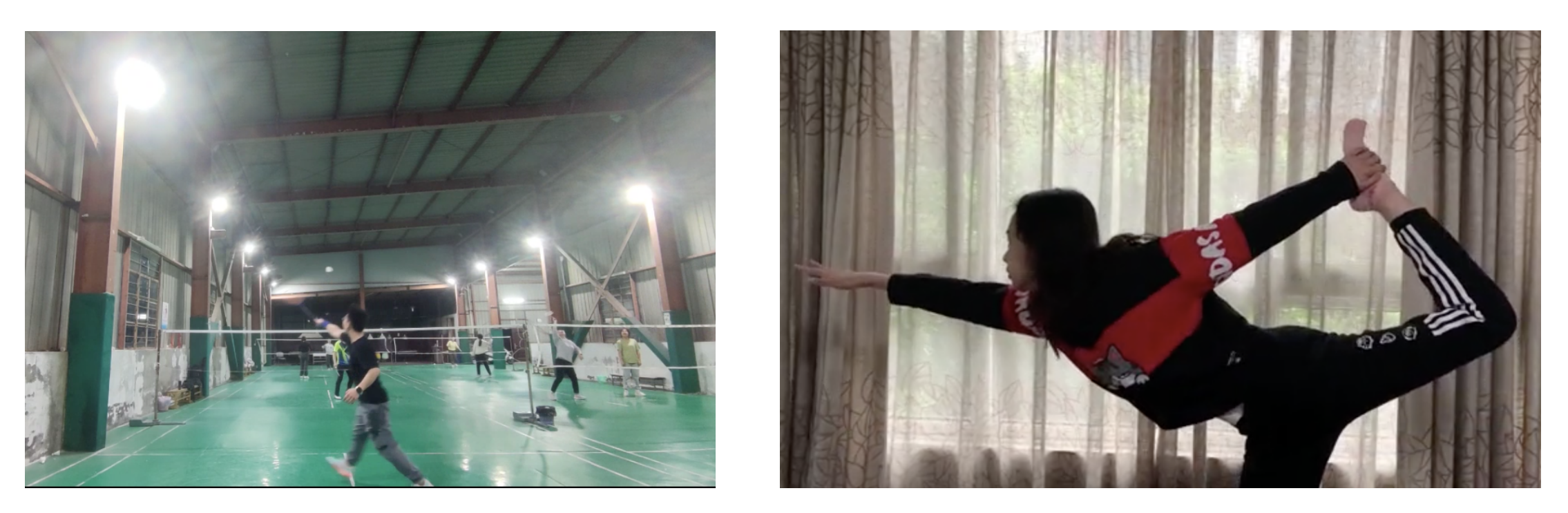 运动达人展示活动中,各种各样的运动照片和充满新意的运动短视频展现出同学们丰富多彩的网课课余生活。