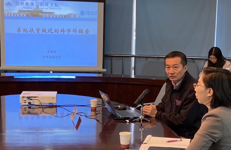 李树茁教授以“易地扶贫搬迁的跨学科探索”为题作了一场精彩的学术讲座。主要分为四个部分:背景与认识;跨学科探索与实践;跨学科探索案例;总结与启示。