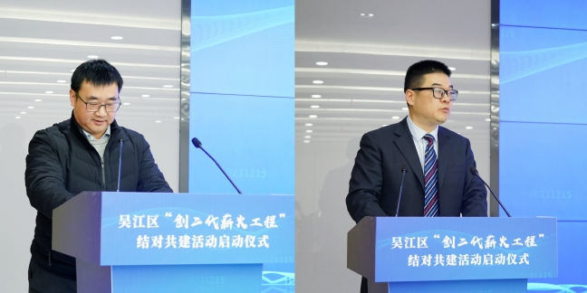 12月15日下午,吴江区“创二代薪火工程”民营企业结对共建活动启动仪式在吴江举行。苏州大学商学院院长、江苏省新时代民营经济研究院院长冯博,苏州大学商学院副院长徐涛和研究院、商学院16名专家参加,吴江区委常委、组织部部长、统战部部长杨斌,吴江区政协副主席、工商联主席沈向东等区领导出席会议。
