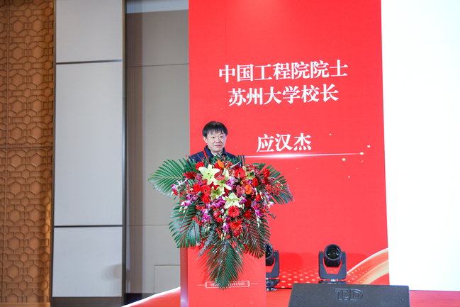 本次盛典的亮点还包括三场引人入胜的主旨演讲,由苏州大学校长、中国工程院院士应汉杰,江苏省工商联原一级巡视员桂德祥,以及中国人民解放军原总装备部退役少将蔺芳忠分别呈现:应汉杰院士以《生物制造:未来物质生产的新方式》为题,展望了生物技术在制造业中的革命性应用前景。桂德祥的演讲《促进民营经济做大做优做强》探讨了民营企业在国家经济中的关键作用及其发展策略。蔺芳忠少将则通过《国际商务谈判理念与实践》分享了他在军事和商业谈判中的丰富经验。