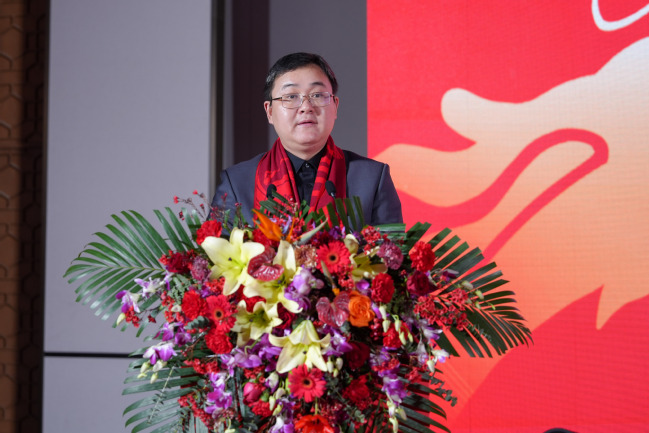 晚宴在历任高管班班长的视频祝福和开场舞中拉开序幕,营造出欢乐热烈的氛围。苏州大学商学院院长冯博在晚宴上发表了新年致辞,她对领导和嘉宾的到来表示欢迎,并承诺学院将依托江苏省新时代民营经济研究院全力支持经管培训学院助力民营企业和企业家的发展。高管教育校友联盟轮值理事长陈杰也发表了讲话,强调了联盟在推动校友企业高质量发展中的作用。