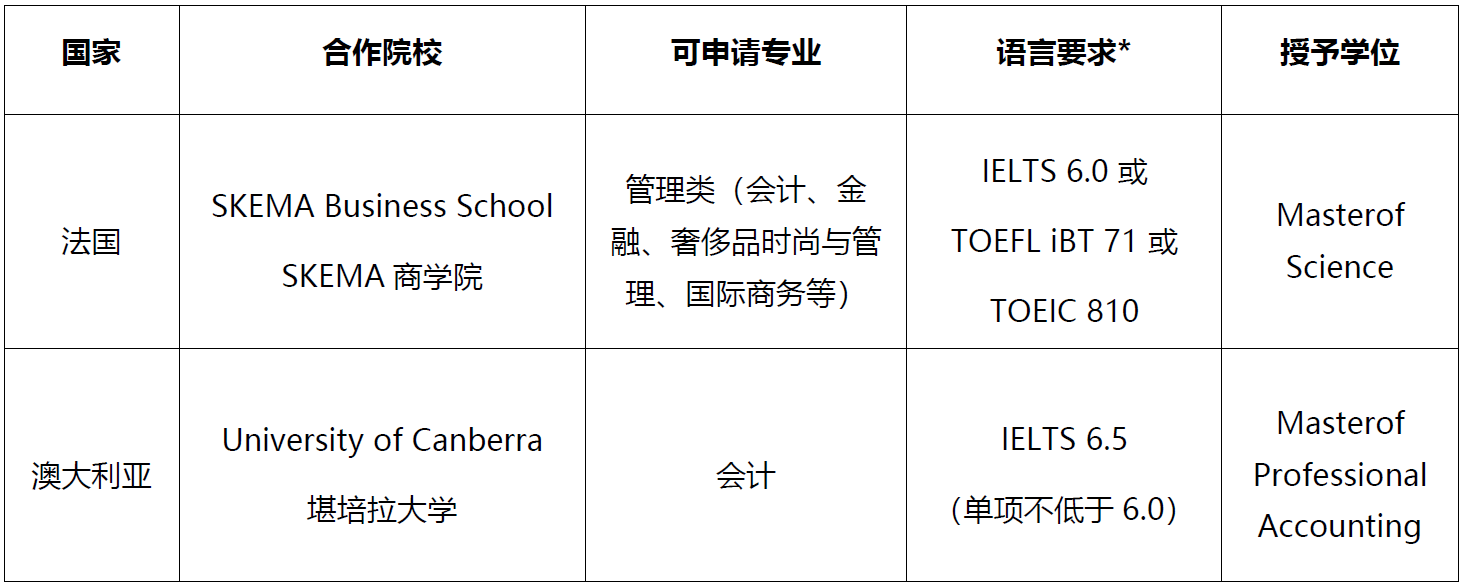 *申请签证时需要满足对方国家签证的语言要求,部分外方合作院校可为项目学生提供语言过渡课程。