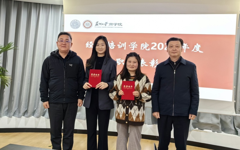2024年1月16日上午,苏州大学商学院经管培训学院组织召开了2023年度工作总结暨表彰会议,对2023年度工作进行全面回顾,并对2024年度工作进行部署以及对优秀员工进行表彰。商学院党委书记刘志明,商学院副院长、经管培训学院院长王要玉,经管培训学院副院长缪爱国,经管培训学院副院长陶虹,高管培训中心主任汪晓媛,企业定制中心主任王丹萍,企业定制中心副主任于音,高管培训中心业务主管孙秀琪,经管培训学院全体培训专员参加了此次会议。会议由缪爱国副院长主持。