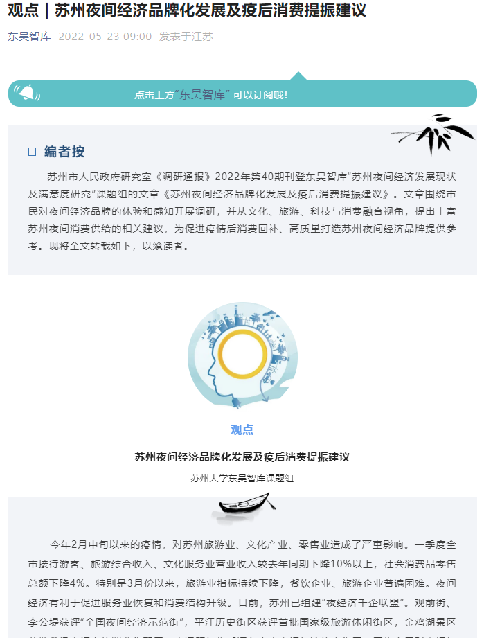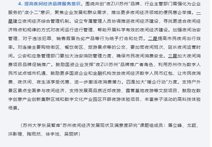 值得一提的是,《“姑苏八点半,最美夜江南”:苏州夜间经济发展现状及其满意度研究》团队基于调研报告的内容,提炼并撰写了《苏州夜间经济发展现状及满意度研究》决策咨询报告。